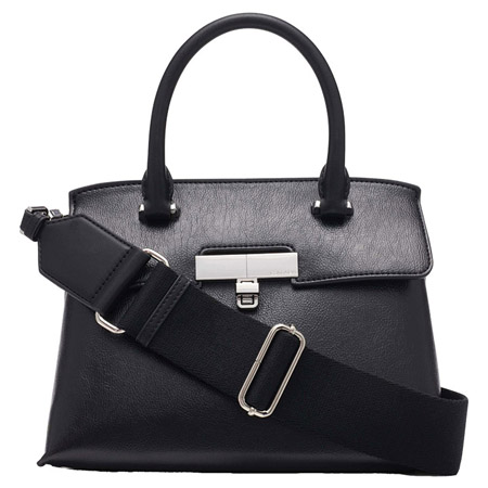 The black Becky crossbody from Calvin Klein is a chic but practical bag that offers plenty of space to keep your essentials in place. It features a flap with push-lock closure, silver-tone hardware, interior slip pockets, and a zip pocket. It’s made of high-quality vegan leather and measures 5.5” x 7” x 9.25”.