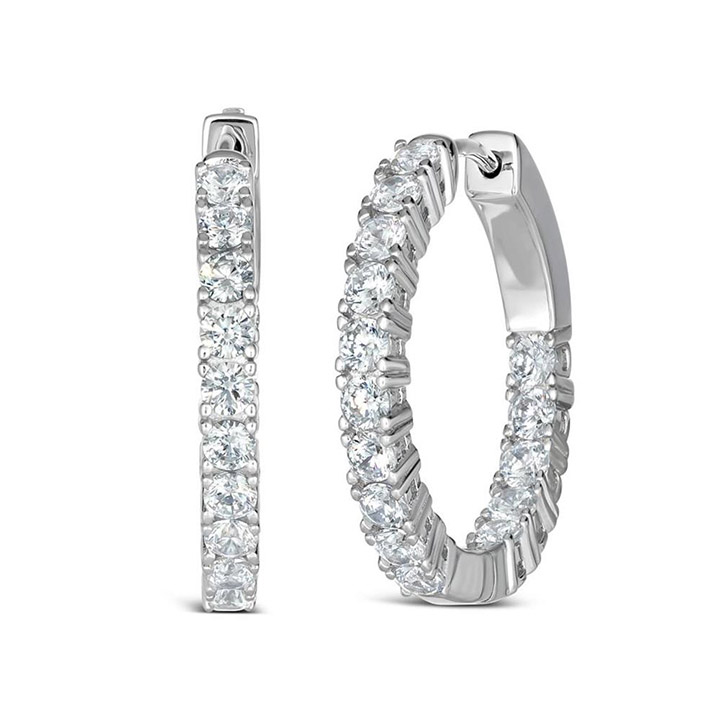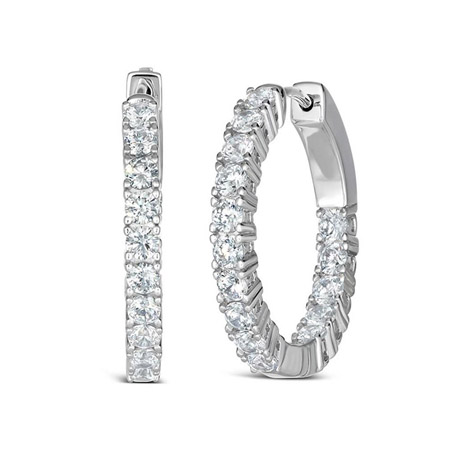 Best Selling Inside Out Diamond Crystalline Hoop Earrings. Perfect for any day of the week. Stone Type: Diamond Crystalline Total Carat Weight: 1tcw Metal Type: Sterling Silver 925 Metal Finish: Platinum Earring Length: 1 inch Style ID: Anastasia 78