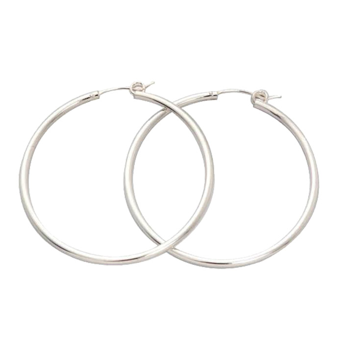 Add some pizazz to your jewelry box with these classic 35mm sterling silver hoops. The classic hoops are equal parts chic and retro.