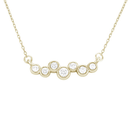 Seven round brilliant-cut diamonds total .15ct in this 14k yellow gold, hand-set necklace.