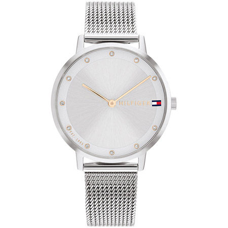 Look timeless while always being on time. This watch features a 34mm stainless steel case, stainless steel mesh bracelet with sliding buckle, grey dial with understated hour markers and the Tommy logo at 3 o'clock. Water resistant up to 3 ATM.