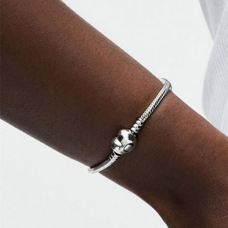 Set your heart a-flutter with this romantic version of Pandora's bestselling charm bracelet. Hand-finished with a heart-shaped clasp
