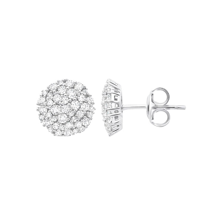 These elegant, wear-anywhere Crislu stud earrings feature clustered cubic zirconia set in a sparkling circle. Elegantly crafted in 0.925 sterling silver and finished in pure platinum, they have 0.85 total carats of cubic zirconia.